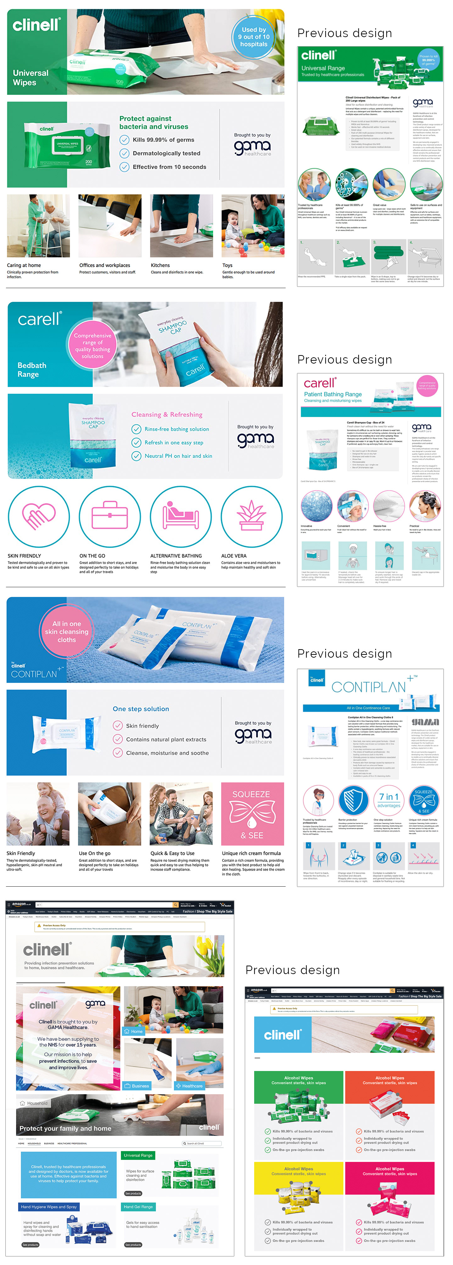 I was tasked with refreshing the Amazon stores and product page designs for GAMA's brands. A lot of the work took place during COVID, so for some products which we didn't have existing photography for, we had to take our own photos at home of the products and use stock photography and icons.